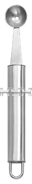 Ньюазетная ложка Pintinox 78000228 используется на предприятиях общественного питания и торговли, в частных домах и квартирах для формирования ровных шариков или полусфер из овощей, фруктов, мороженого и прочих продуктов. Изделие оснащено удобной ручкой с крючком на конце. Ложка выполнена из качественной и устойчивой к коррозии нержавеющей стали, что придает ей высокую прочность и длительный срок службы.