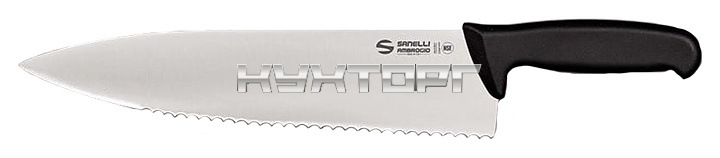 Универсальный нож Sanelli Ambrogio 5349130 предназначен для нарезки ветчины, сыра, тортов на предприятиях общественного питания и торговли, а также в частных домах и квартирах. Модель оснащена лезвием с зубчатым краем и напечатанным лазером логотипом с кодом продукта и номером партии. Изделие выполнено из высокопрочной коррозионностойкой нержавеющей стали NITRO-B, обогащенной азотом, углеродом, хромом, молибденом и ванадием, ручка - из черного TPE-пластика.