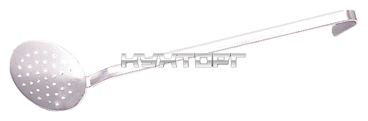 Шумовка Pujadas 302.116 используется на предприятиях общественного питания для съема накипи и пены с супов и других блюд, выемки мяса и рыбы из кипящей воды. Модель имеет удобную длинную ручку с крючком. Изделие выполнено из хромоникелиевой нержавеющей стали 18/10
