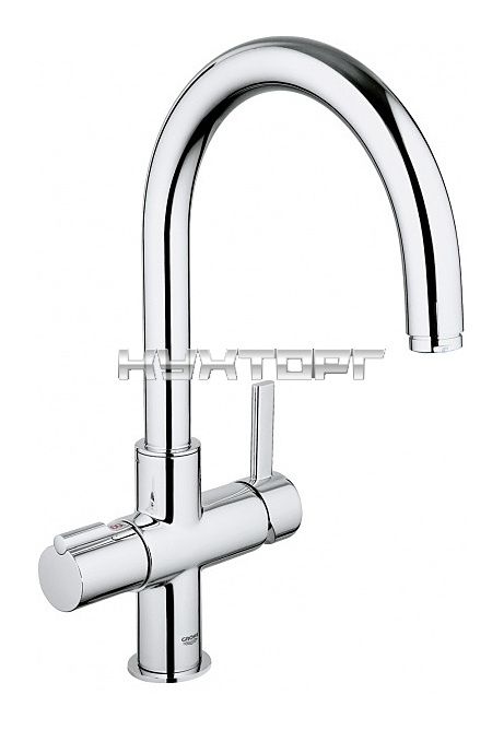 Смеситель оснащен функциейCoolTouch, защищающейот ожогов.Создается внутренний "охлаждающий канал", который являетсябарьером между поверхностью и горячей водой. РукояткаChildLock, оснащенная фиксатором "потянуть и повернуть",служит для безопасного открывания горячей воды.