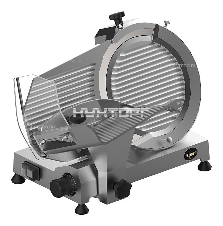 Слайсер Apach ASL220 предназначен для нарезки различных продуктов на предприятиях общественного питания и торговли. Модель оснащена вентилируемым мотором и встроенным затачивающим устройством. Корпус выполнен из литого анодированного алюминиевого сплава, нож - из кованой углеродистой стали 100Cr6.