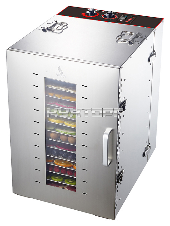 Дегидратор Airhot FD-16G используется на предприятиях общественного питания и торговли, в производственных цехах, а также в домашних условиях для сушки овощей, грибов, фруктов и ягод. Модель оснащена электромеханической панелью управления. Корпус выполнен из нержавеющей стали.