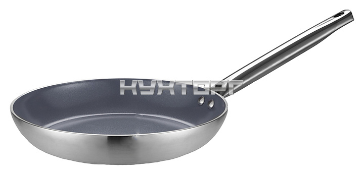 Антипригарная сковорода Pujadas 120.828 используется на предприятиях общественного питания для приготовления широкого спектра блюд. Модель оснащена ручкой и специальным дном, пригодным для индукционных плит. Изделие выполнено из алюминия с антипригарным керамическим покрытием, дно - из нержавеющей стали.