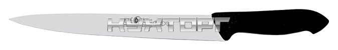 Нож для мяса ICEL Horeca Prime Carving Knife 28100.HR14000.250 оснащен эргономичной ручкой черного цвета из приятного на ощупь пластика Proflex, устойчивого к высоким температурам и воздействию агрессивных элементов, и заточенным вручную лезвием, выполненным из высококачественной нержавеющей стали с добавлением хрома, молибдена и ванадия. Твердость стали, закаленной по специальной технологии, составляет более 56 HRC. Ручка, изготовленная по системе инжекции, имеет специальную антибактериальную защиту Microban.