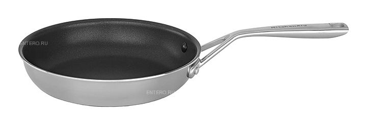 Сковорода KitchenAid KC2T10NKST серии 3 Ply SS предназначена для приготовления широкого спектра блюд. Изделие имеет трехслойную структуру толщиной 3 мм: внутренний слой выполнен из нержавеющей стали 18/10, средний слой - из алюминия, а наружное покрытие представлено слоем магнитной нержавеющей стали 18/0, ручка выполнена из нержавеющей стали, магнитная основа дна - из нержавеющей стали 18/0.
