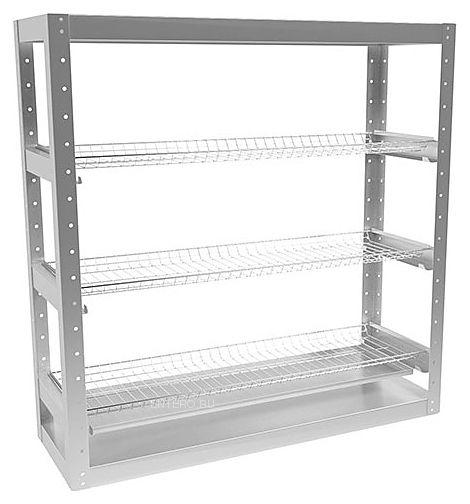 полки - для посуды; 3 полки; Для тарелок; макс. загрузка на полку - 50 кг; каркас - нерж. сталь; полки - хромированная |