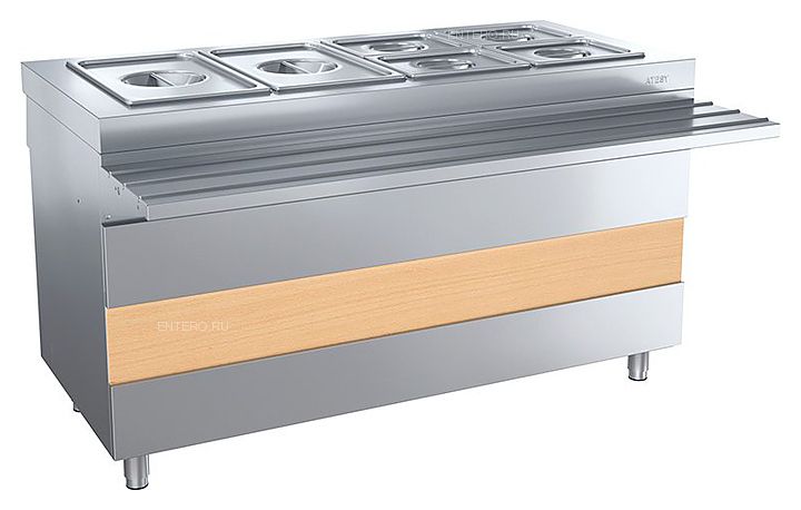 Мармит ATESY Ривьера М2-1500-02-СО используется в составе линии раздачи Ривьера на предприятиях общественного питания и торговли для поддержания в горячем состоянии гастроемкостей со вторыми блюдами, гарнирами и соусами. Модель оснащена герметичной ванной для размещения гастроемкостей и терморегулятором, позволяющим осуществлять настройку температуры нагрева гастроемкостей. Столешница выполнена из нержавеющей стали AISI 430 и усилена листом ламинированной ДСП толщиной 16 мм, ванна - из нержавеющей стали, ножки - из нержавеющей стали и пластиковой опорной части.