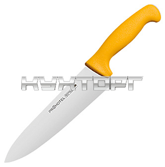 Поварской нож ProHotel AS00301-04Yl используется на предприятиях общественного питания и торговли, в частных домах и квартирах для нарезки овощей, зелени, мяса, рыбы, птицы и других продуктов. Лезвие выполнено из нержавеющей стали, ручка - из пластика.
