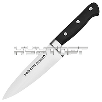 Поварской нож ProHotel AG00801-01 используется на предприятиях общественного питания и торговли, в частных домах и квартирах для нарезки овощей, зелени, мяса, рыбы, птицы и других продуктов. Тройная клепка на ручке делает конструкцию более прочной и долговечной. Лезвие выполнено из нержавеющей стали, ручка - из пластика.