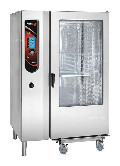 Пароконвектомат Fagor VE-202 - бойлерная модель с сенсорной панелью управления. Двадцать уровней загрузки для противней типоразмера GN 2/1 (сорок уровней для GN 1/1).