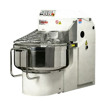 Спиральный месильный орган. Вращающаяся шлифованная дежа и все соприкасающиеся с тестом детали выполнены из нержавеющей стали. Тип трансмиссии - ременная передача. Механическая система захвата дежи. Реверсивное движение дежи. 2 скорости вращения месильного органа и 2 таймера. Автоматическое переключение скоростей. Специальное устройство подъема месильного органа позволяет избежать вибрации трансмиссии во время вращения спирали. Защитная решетка, выполненная из нержавеющей стали. Материал корпуса - окрашенная сталь. Максимальная загрузка дежи 200 кг теста. Объем дежи 280 л.
