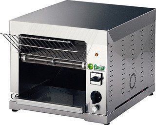 Тостер Fimar TOC предназначен для подогрева и поджарки кусочков хлеба на предприятиях общественного питания и торговли. Модель оснащена регулировкой скорости обжарочного конвейера и самовентилируемым двигателем со встроенным редуктором. Корпус и поворотный обжарочный конвейер выполнены из нержавеющей стали.