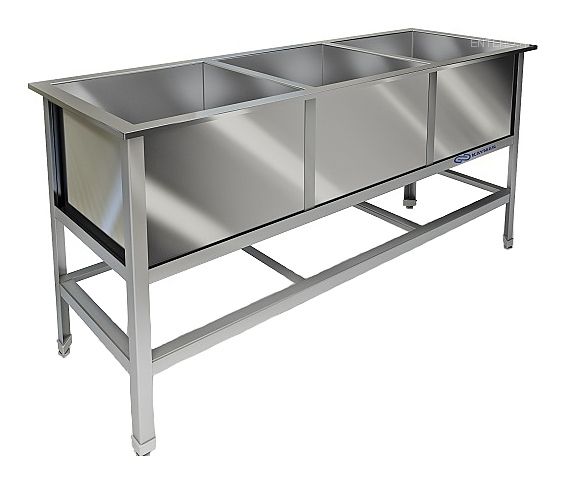 Моечная ванна KAYMAN К-ВМО-3/1750/630 используется на предприятиях общественного питания и торговли для мойки продуктов питания, посуды и кухонных принадлежностей. Каркас выполнен из уголка 40х40 мм из оцинкованной стали толщиной 1,5 мм, емкости - из нержавеющей стали AISI 304 толщиной 0,8 мм. Ванна имеет отгибы, которые исключают травмирование персонала.