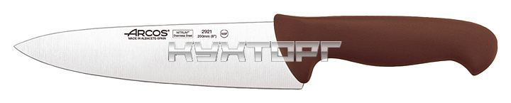 Поварской нож Arcos 2900 Chef's Knife 292128 оснащен удобной ручкой из нескользящего полипропилена, изготовленного по системе инжекции, устойчивого к ударам и перепаду температур, и лезвием, выполненным из эксклюзивной нержавеющей стали NITRUM, отличающейся повышенной прочностью. Соединение между ручкой и лезвием является бесшовным благодаря использованию системы инжекции.