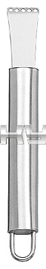 Карбовочный нож для цедры Pintinox 78002805 используется на предприятиях общественного питания и торговли, в частных домах и квартирах для нарезки бороздок на цитрусовых и других фруктах и овощах для украшений блюд. Изделие оснащено удобной ручкой с крючком на конце. Нож выполнен из качественной и устойчивой к коррозии нержавеющей стали, что придает ему высокую прочность и длительный срок службы.