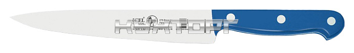 Нож для нарезки ICEL Technik Carving Knife 27100.8614000.170 оснащен эргономичной ручкой черного цвета из полиоксиметилена, устойчивого к высоким температурам, и заточенным вручную лезвием, выполненным из высококачественной нержавеющей стали с добавлением хрома, молибдена и ванадия. Твердость стали, закаленной по специальной технологии, составляет более 56 HRC. Ручка соединена с лезвием посредством заклепок из нержавеющей стали.
