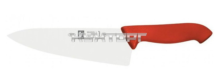 Поварской нож ICEL Horeca Prime Chef's Knife 28400.HR10000.200 оснащен эргономичной ручкой красного цвета из приятного на ощупь пластика Proflex, устойчивого к высоким температурам и воздействию агрессивных элементов, и заточенным вручную лезвием, выполненным из высококачественной нержавеющей стали с добавлением хрома, молибдена и ванадия. Твердость стали, закаленной по специальной технологии, составляет более 56 HRC. Ручка, изготовленная по системе инжекции, имеет специальную антибактериальную защиту Microban.