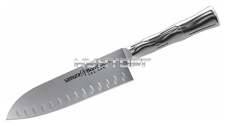 Нож сантоку Samura Bamboo SBA-0093/Y предназначен для нарезки, рубки и шинковки различных продуктов на предприятиях общественного питания и торговли, в частных домах и квартирах. Рукоять сделана в виде бамбукового стебля, без швов. Лезвие и ручка выполнены из коррозионно-стойкой молибдено-ванадиевой однослойной стали AUS-8.