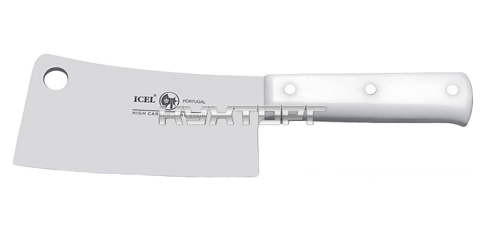 Нож для рубки ICEL Cutelos de Cozinha Cleaver 37200.4024000.150 оснащен эргономичной ручкой белого цвета из полиоксиметилена, устойчивого к высоким температурам, и заточенным вручную лезвием, выполненным из высококачественной нержавеющей стали с добавлением хрома, молибдена и ванадия. Твердость стали, закаленной по специальной технологии, составляет более 56 HRC. Ручка соединена с лезвием посредством заклепок из нержавеющей стали.