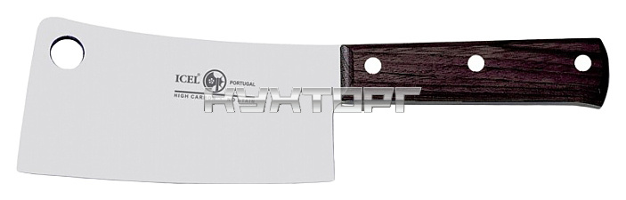 Нож для рубки ICEL Cutelos de Cozinha Cleaver 33300.4024000.150 оснащен эргономичной ручкой из натурального палисандра и заточенным вручную лезвием, выполненным из высококачественной нержавеющей стали с добавлением хрома, молибдена и ванадия. Твердость стали, закаленной по специальной технологии, составляет более 56 HRC. Ручка соединена с лезвием посредством заклепок из нержавеющей стали.