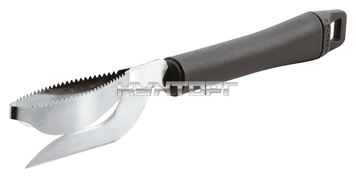 Нож для чистки рыбы Paderno 48280-37 используется на предприятиях общественного питания и торговли. Изделие имеет 2 рабочие части и эргономичную ручку с отверстием на конце для удобного хранения. Нож выполнен из качественной и устойчивой к коррозии нержавеющей стали, ручка - из пластика.