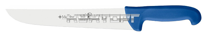 Нож для мяса ICEL Safe Butcher Knife 28100.3181000.200 оснащен эргономичной ручкой черного цвета из приятного на ощупь пластика Proflex, устойчивого к высоким температурам и воздействию агрессивных элементов, и заточенным вручную лезвием, выполненным из высококачественной нержавеющей стали с добавлением хрома, молибдена и ванадия. Твердость стали, закаленной по специальной технологии, составляет более 56 HRC. Ручка, изготовленная по системе инжекции, имеет специальную антибактериальную защиту Microban.