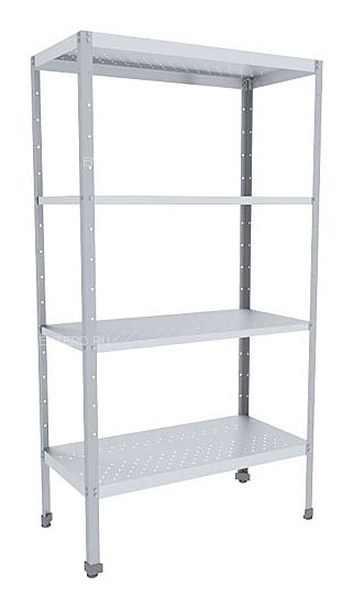 Кухонный стеллаж Пищевые Технологии Эконом СКК-10/4 ЭЦК-П предназначен для хранения посуды, инвентаря и сухих продуктов на предприятиях общественного питания и торговли. Модель оснащена перфорированными полками и регулируемыми по высоте ножками. Разборный каркас выполнен из оцинкованного уголка, полки - из нержавеющей стали.