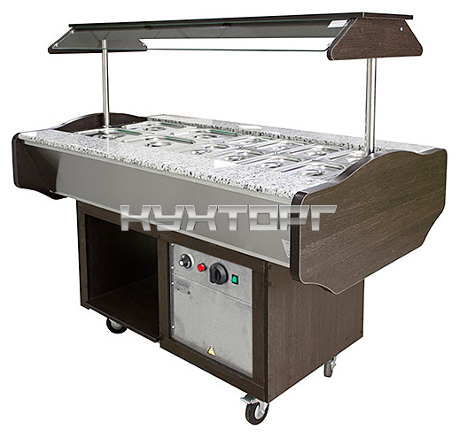 Мармит Пищевые Технологии МЭП-2Б-ШС-Г предназначен для кратковременного сохранения в горячем состоянии вторых блюд, соусов и гарниров в составе линий раздач или самостоятельно на предприятиях общественного питания и торговли. Модель оснащена открытой нишей и колесами. Каркас выполнен из трубы, покрытой порошковой краской, столешница - из гранита, отдельные элементы - из ЛДСП.