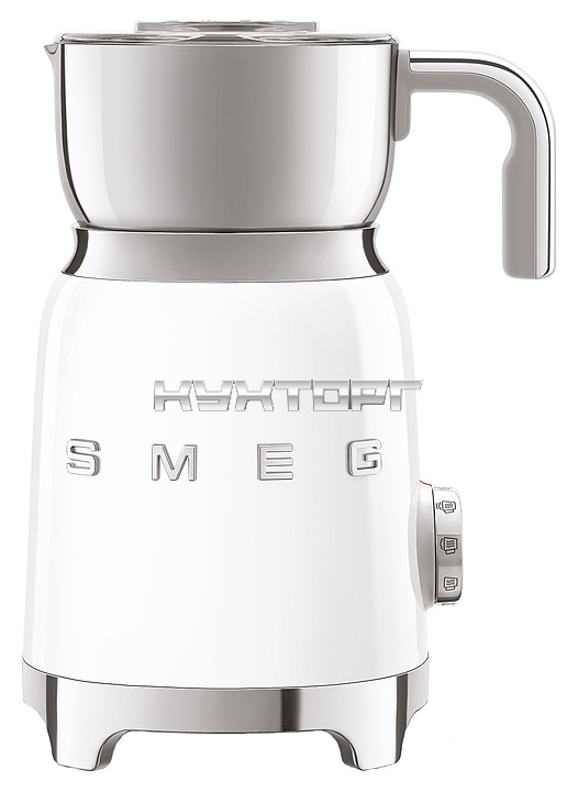 Вспениватель молока Smeg MFF01WHEU используется в частных домах и квартирах для приготовления молочной пены для кофейных напитков и горячего шоколада. Модель выполнена в стиле 50-х годов. Корпус и кувшин изготовлены из нержавеющей стали, крышка - из тритана.
