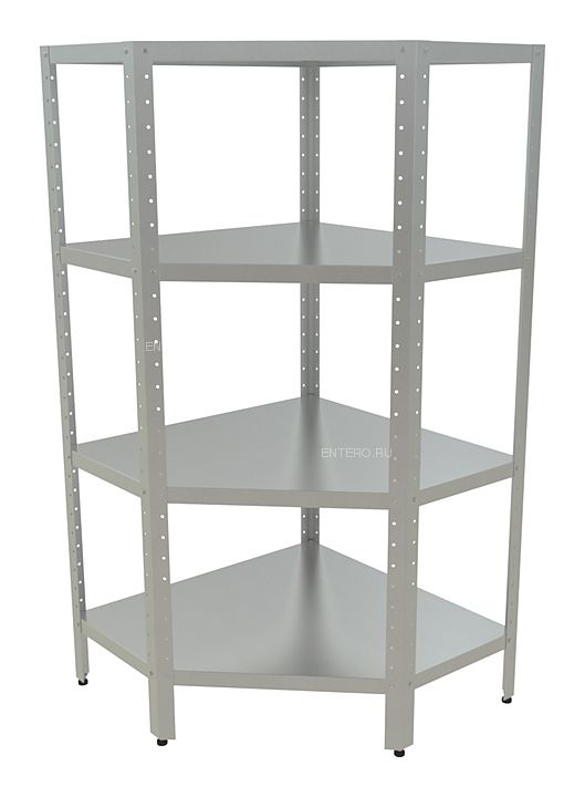 Угловой кухонный стеллаж Кобор СКУ-4/4-100/100 предназначен для хранения посуды, различного инвентаря и сухих продуктов на предприятиях общественного питания и торговли. Модель оснащена сплошными полками. Разборный каркас выполнен из уголка из оцинкованной стали, полки - из нержавеющей стали AISI 430.