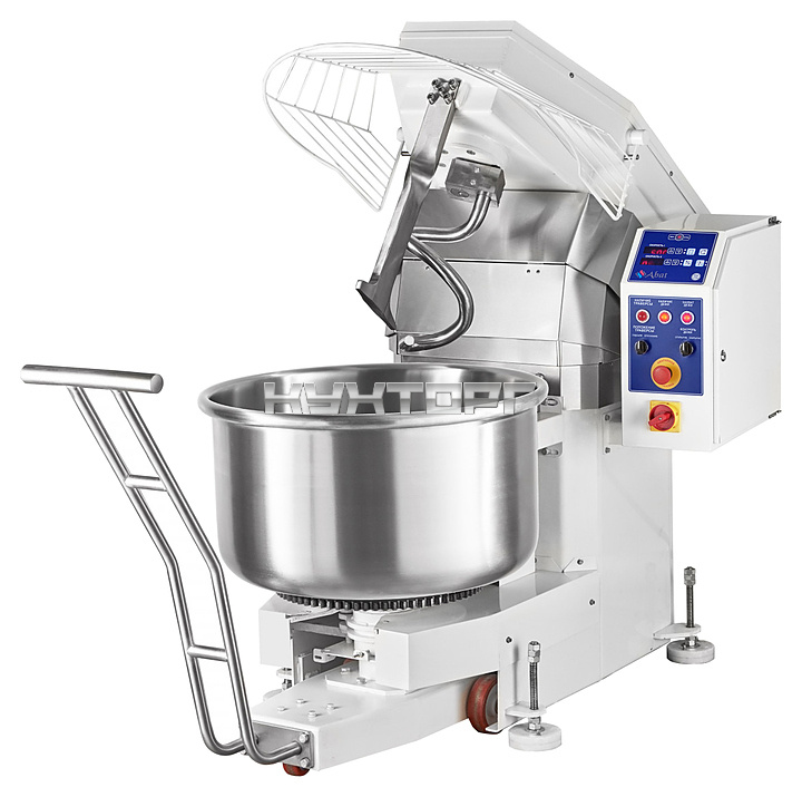 400 кг/ч; 120 л; от 25 до 80 кг; 2 скорости; подкатная дежа; подъемная траверса; крутое тесто; 380 В; от 3.2 до 5.4 кВт |