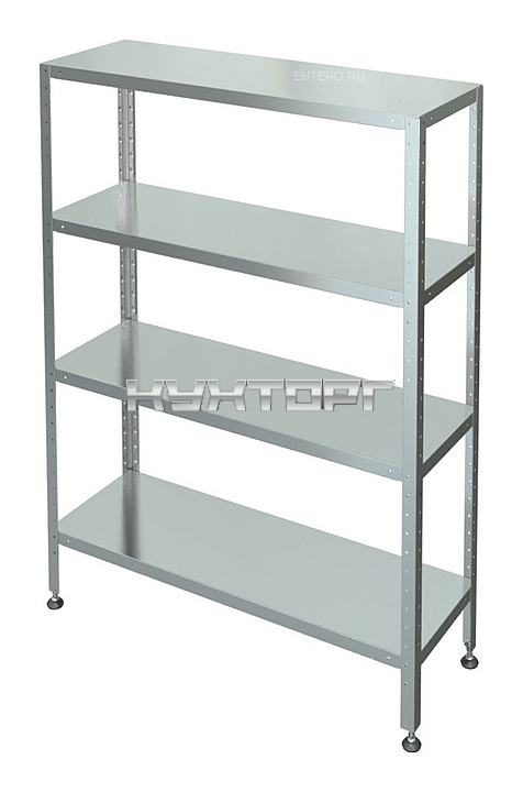 Стеллаж Марихолодмаш С-4-0,3/1,2/1,8 предназначен для хранения кухонного инвентаря и упакованных пищевых продуктов с целью увеличения полезного пространства помещений в моечных отделениях, складских помещениях и в холодильных камерах на предприятиях общественного питания и торговли. Полки выполнены из нержавеющей стали AISI 430 толщиной 0,5 мм, стойки - из оцинкованного стального уголка.