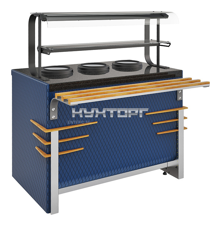 Внимание! На фото аналогичная модель другого размера с каменной столешницей, дверками в нише и направляющей для подносов.