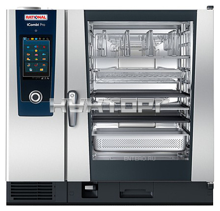 Пароконвектомат Rational iCombi Pro 10-2/1 предназначен для приготовления блюд путём жарки, тушения или варения на предприятиях общественного питания и торговли. Такое оборудование может заменить плиту, жарочный и духовой шкаф, конвекционную печь, опрокидывающуюся сковороду, пищеварочный котел и др. Модель оснащена цветным 8,5 дюймовым TFT-монитором, сенсорным экраном с самообъясняющими символами.
