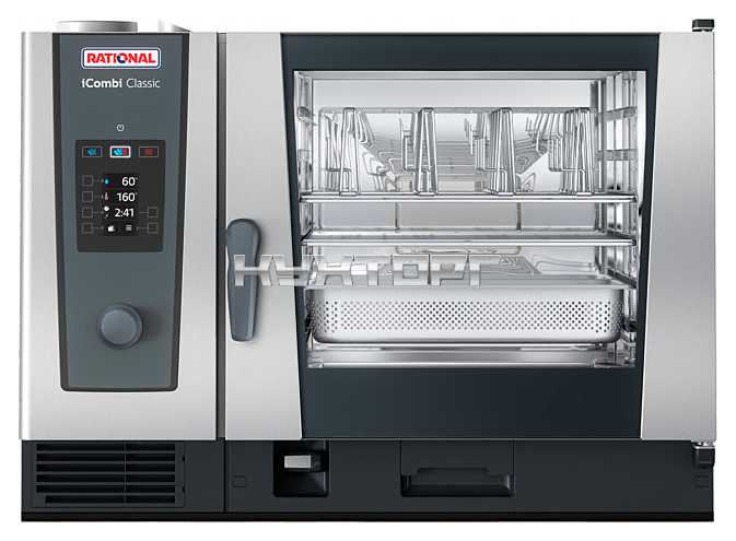 Пароконвектомат Rational iCombi Classic 6-2/1 предназначен для приготовления блюд путём жарки, тушения или варения на предприятиях общественного питания и торговли. Такое оборудование может заменить плиту, жарочный и духовой шкаф, конвекционную печь, опрокидывающуюся сковороду, пищеварочный котел и др. Модель оснащена цветным TFT-дисплеем с мягкими кнопками и поворотным регулятором с функцией Push.