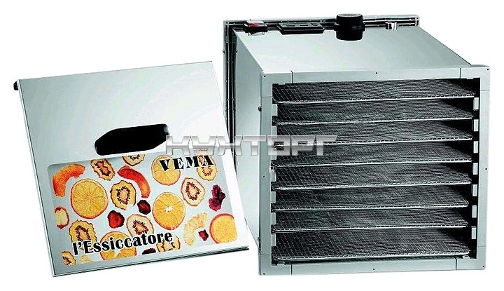 Дегидратор Vema EC 2103/8 используется на предприятиях общественного питания и торговли, в производственных цехах, а также в домашних условиях для сушки овощей, грибов, фруктов и ягод. Модель оснащена электромеханической панелью управления. Корпус выполнен из нержавеющей стали.