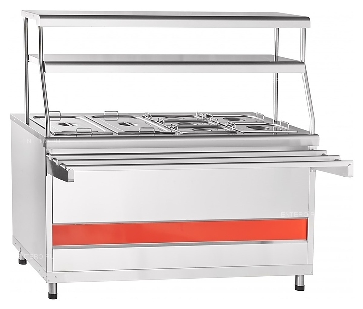 - Двойная полка над мармитом с подсветкой для выкладки блюд