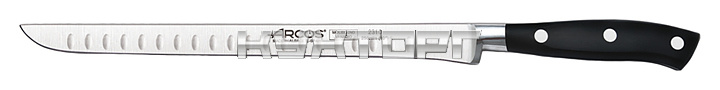 Нож для окорока Arcos Riviera Slicing Knife 231000 оснащен удобной ручкой из полиоксиметилена, устойчивого к перепаду температур и воздействию чистящих средств, и цельнокованным лезвием, выполненным из эксклюзивной нержавеющей стали NITRUM, отличающейся повышенной прочностью. Ручка соединена с лезвием посредством специальных шпунтованных заклепок из нержавеющей стали, обладающих повышенной коррозионной стойкостью.