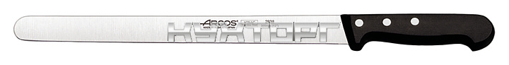 Нож для окорока Arcos Universal Slicing Knife 283804 оснащен удобной ручкой из полиоксиметилена, устойчивого к перепаду температур и воздействию чистящих средств, и лезвием, выполненным из эксклюзивной нержавеющей стали NITRUM, отличающейся повышенной прочностью. Ручка соединена с лезвием посредством специальных заклепок из нержавеющей стали, обладающих повышенной коррозионной стойкостью.