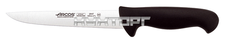 Нож для мяса Arcos 2900 Butcher Knife 294725 оснащен удобной ручкой из нескользящего полипропилена, изготовленного по системе инжекции, устойчивого к ударам и перепаду температур, и лезвием, выполненным из эксклюзивной нержавеющей стали NITRUM, отличающейся повышенной прочностью. Соединение между ручкой и лезвием является бесшовным благодаря использованию системы инжекции.