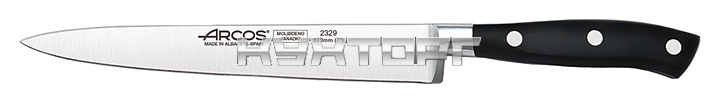Нож для филе Arcos Riviera Sole Knife 232900 оснащен удобной ручкой из полиоксиметилена, устойчивого к перепаду температур и воздействию чистящих средств, и цельнокованным лезвием, выполненным из эксклюзивной нержавеющей стали NITRUM, отличающейся повышенной прочностью. Ручка соединена с лезвием посредством специальных шпунтованных заклепок из нержавеющей стали, обладающих повышенной коррозионной стойкостью.