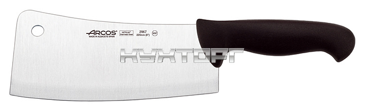 Топорик для рубки мяса Arcos 2900 Cleaver 296725 оснащен удобной ручкой из нескользящего полипропилена, изготовленного по системе инжекции, устойчивого к ударам и перепаду температур, и лезвием, выполненным из эксклюзивной нержавеющей стали NITRUM, отличающейся повышенной прочностью. Соединение между ручкой и лезвием является бесшовным благодаря использованию системы инжекции.