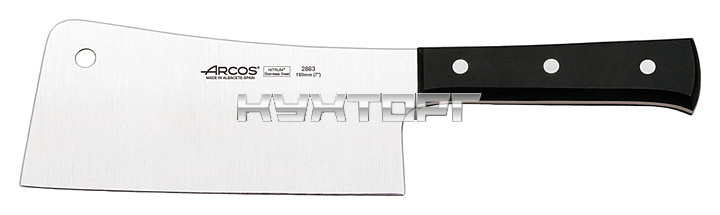 Топорик для рубки мяса Arcos Universal Cleaver 288300 оснащен удобной ручкой из полиоксиметилена, устойчивого к перепаду температур и воздействию чистящих средств, и лезвием, выполненным из эксклюзивной нержавеющей стали NITRUM, отличающейся повышенной прочностью. Ручка соединена с лезвием посредством специальных заклепок из нержавеющей стали, обладающих повышенной коррозионной стойкостью.