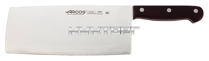Топорик для рубки мяса Arcos Universal Cleaver 288400 оснащен удобной ручкой из полиоксиметилена, устойчивого к перепаду температур и воздействию чистящих средств, и лезвием, выполненным из эксклюзивной нержавеющей стали NITRUM, отличающейся повышенной прочностью. Ручка соединена с лезвием посредством специальных заклепок из нержавеющей стали, обладающих повышенной коррозионной стойкостью.