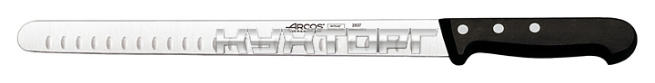 Нож для лосося Arcos Universal Salmon Knife 283704 оснащен удобной ручкой из полиоксиметилена, устойчивого к перепаду температур и воздействию чистящих средств, и лезвием, выполненным из эксклюзивной нержавеющей стали NITRUM, отличающейся повышенной прочностью. Ручка соединена с лезвием посредством специальных заклепок из нержавеющей стали, обладающих повышенной коррозионной стойкостью.