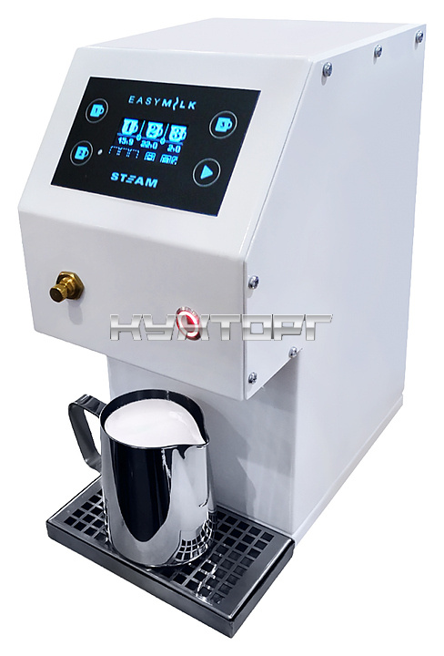 Автоматический вспениватель EasySystem EasySteam ES-01.1.1 предназначен для дозирования, подогрева и вспенивания молока для приготовления напитков на предприятиях общественного питания и торговли. Модель оснащена сенсорной панелью управления с дисплеем и регулируемым поддоном. Корпус выполен из металла.