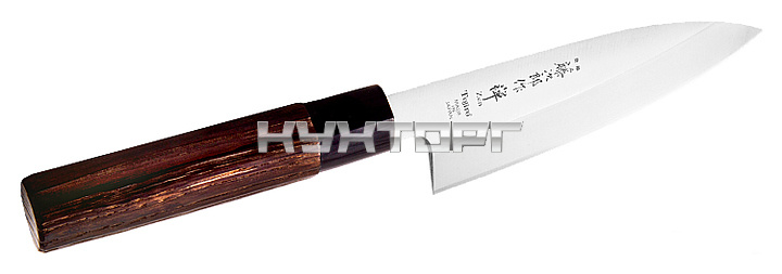 Нож деба Tojiro FD-571 предназначен для разделки рыбы в ресторанах, кафе. Лезвие выполнено из трёхслойной коррозионностойкой кованой мартенситной стали с легирующими добавками молибдена и ванадия Mo-V, рукоятка - из дерева.
