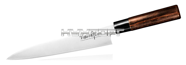 Нож для нарезки слайсер Tojiro FD-569 предназначен для нарезки на порционные кусочки в ресторанах, кафе. Лезвие выполнено из высококачественной трёхслойной стали, рукоятка - из дерева.
