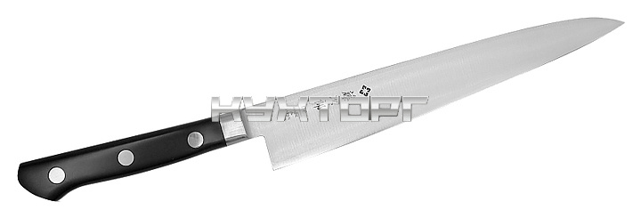 Универсальный нож Tojiro F-798 предназначен для очистки и нарезки фруктов и овощей, для обвалки птицы, подготовки рыбы, жиловки мяса в ресторанах, кафе. Лезвие выполнено из высококачественной трёхслойной стали, рукоятка - из дерева.