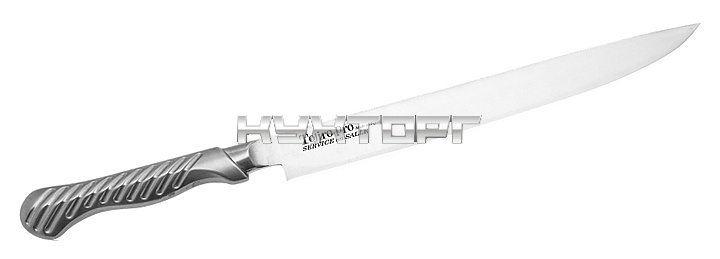 Нож для нарезки слайсер Tojiro FD-704 предназначен для тонкой нарезки на порционные кусочки. Лезвие выполнено из высококачественной однослойной стали, нескользящая металлическая рукоять - из нержавеющей стали стандарта 18-8.